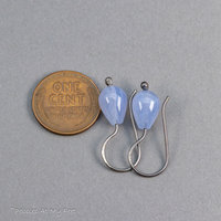 These natural blue chalcedony droplet earrings are such an easy-going style. The earrings hang close to your ears and are crafted from a single piece of wire without any dangling ornaments. It's a great change from traditional post earrings and a subtle way to show your love of unique natural stone jewelry.